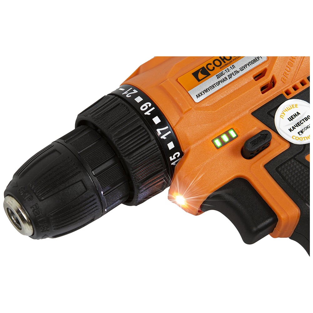 | Индикатор уровня зарядки на корпусе дрели | да |