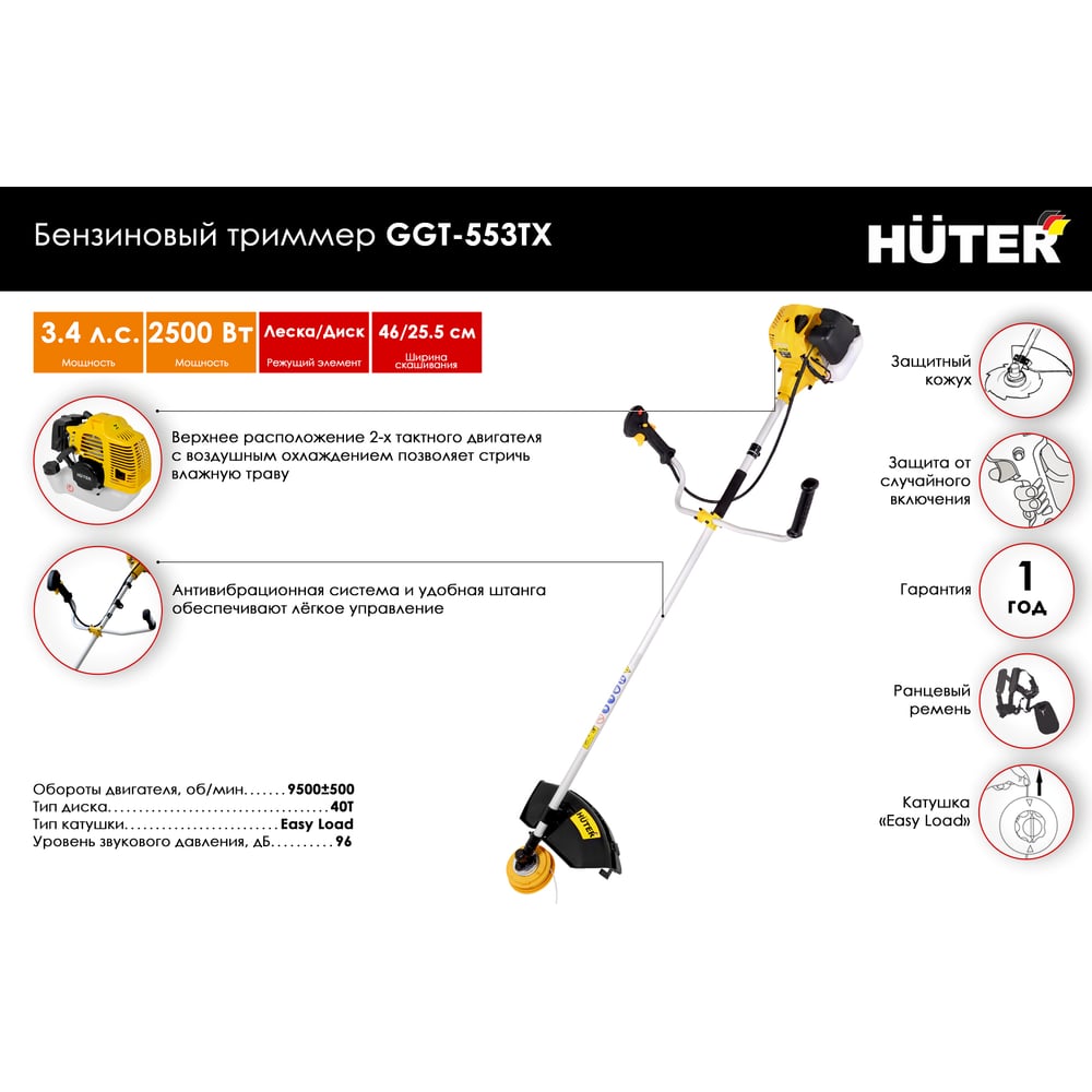 | Ширина скашивания для лески | 460 мм |
