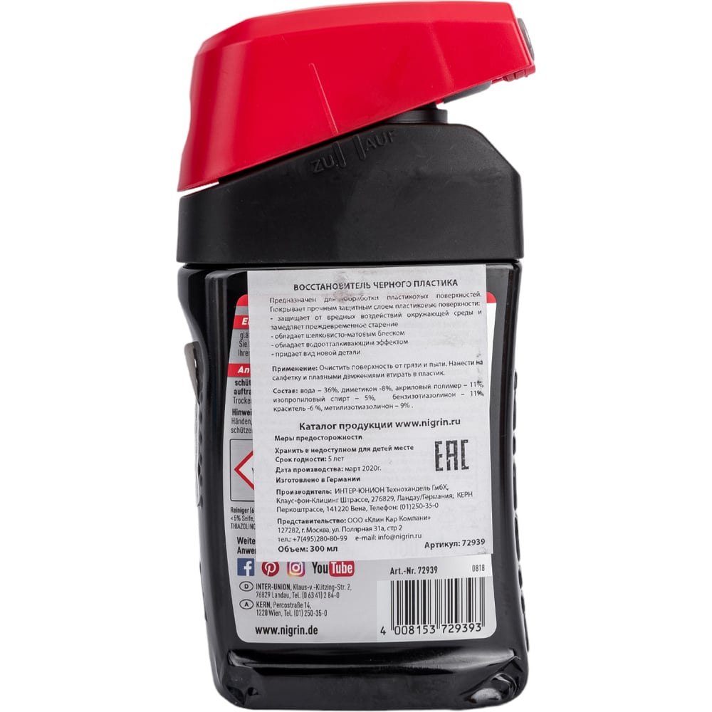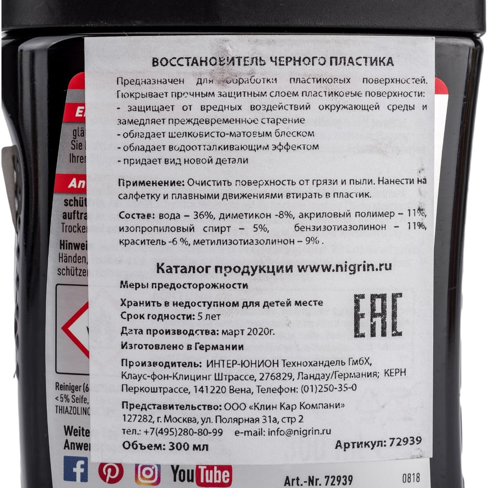 Средство для пластика NIGRIN черный цвет, 300 мл 72939