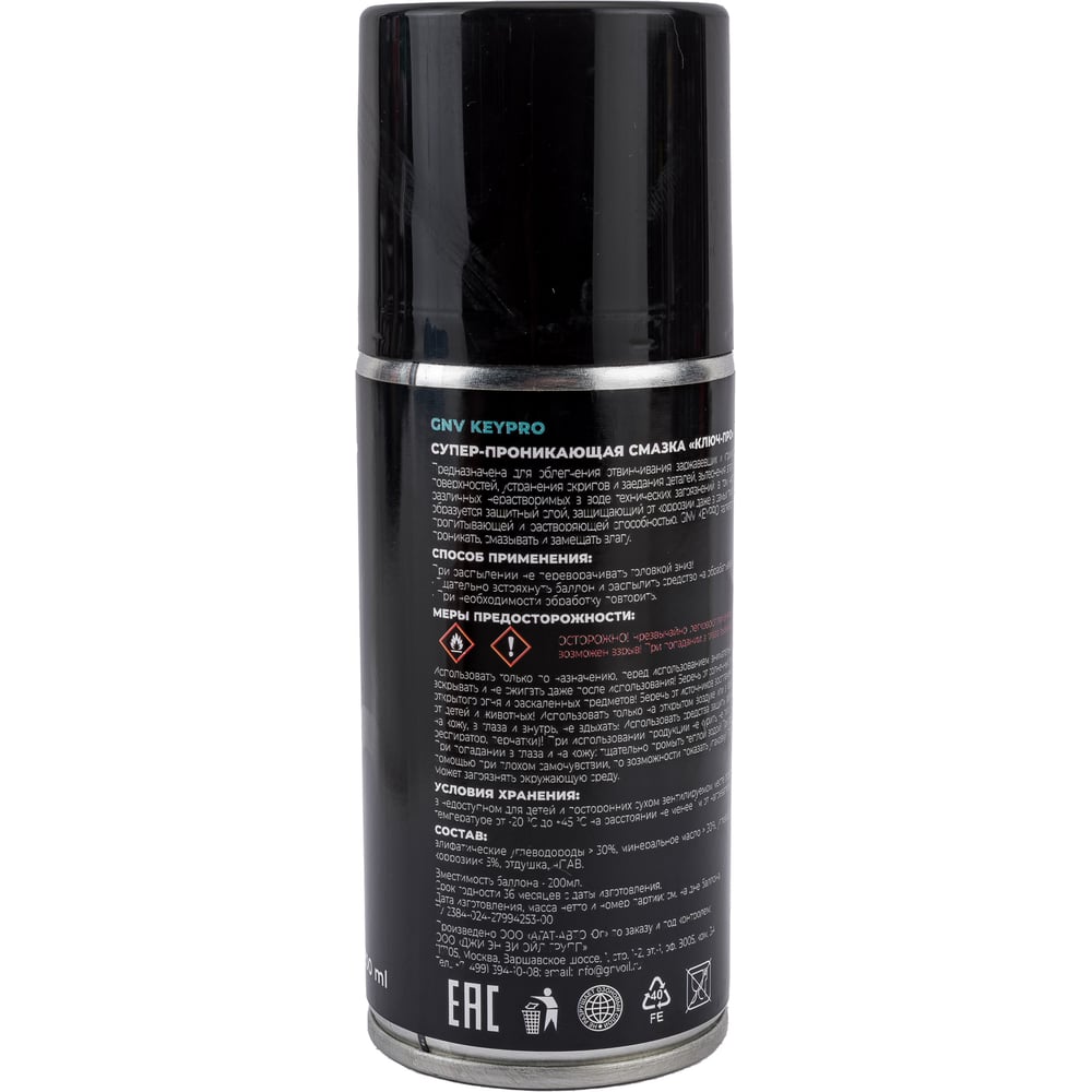 Супер проникающая смазка GNV KeyPro КлючПро аэрозоль 200мл GKP9151015578954000200