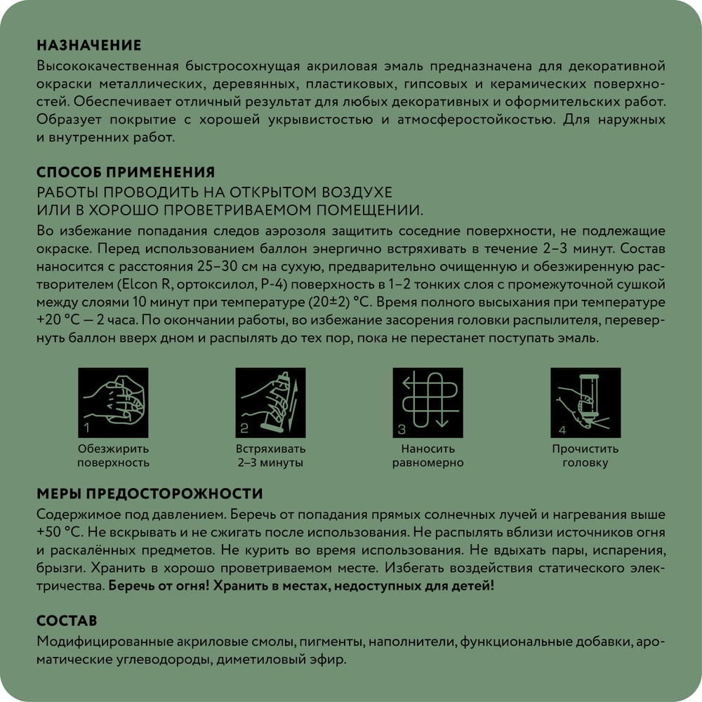 | Способ нанесения | аэрозольное распыление |