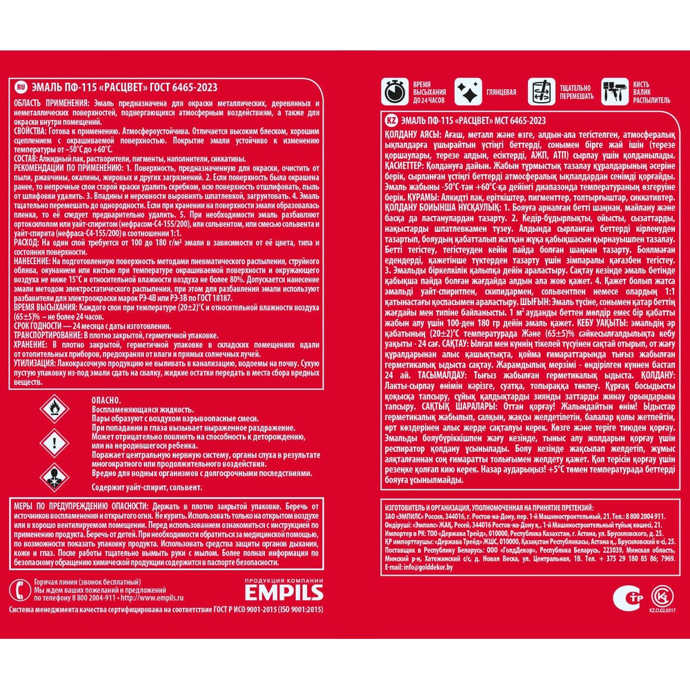 | Способ нанесения | кисть/валик/краскораспылитель |