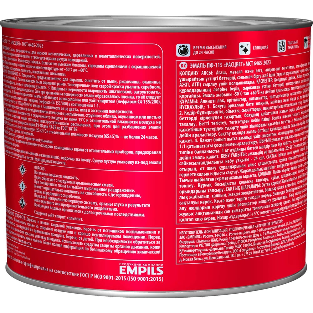 | Время полного высыхания | 24 ч |