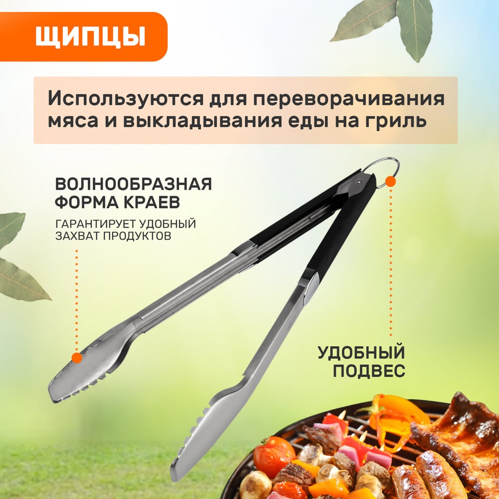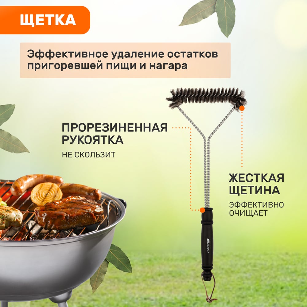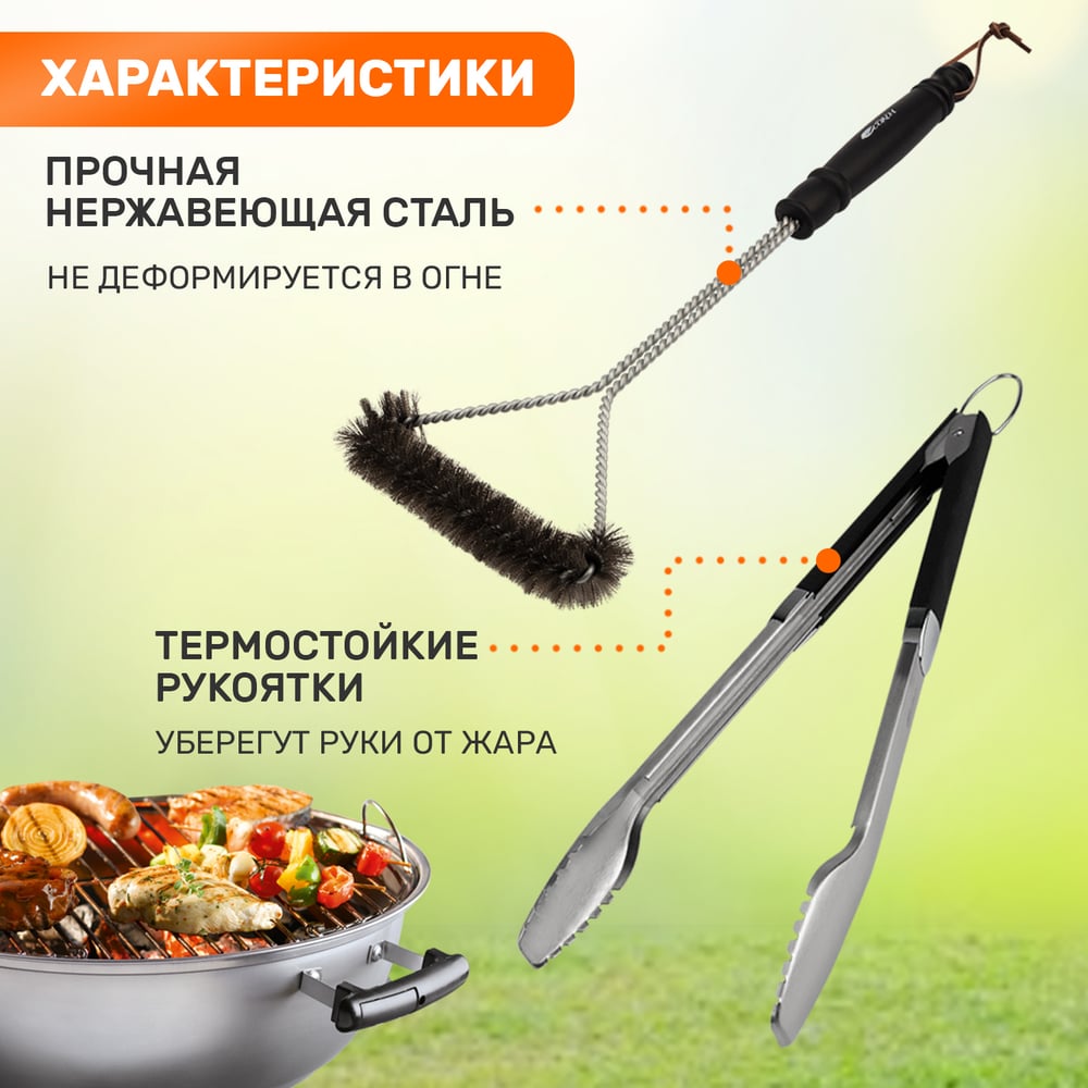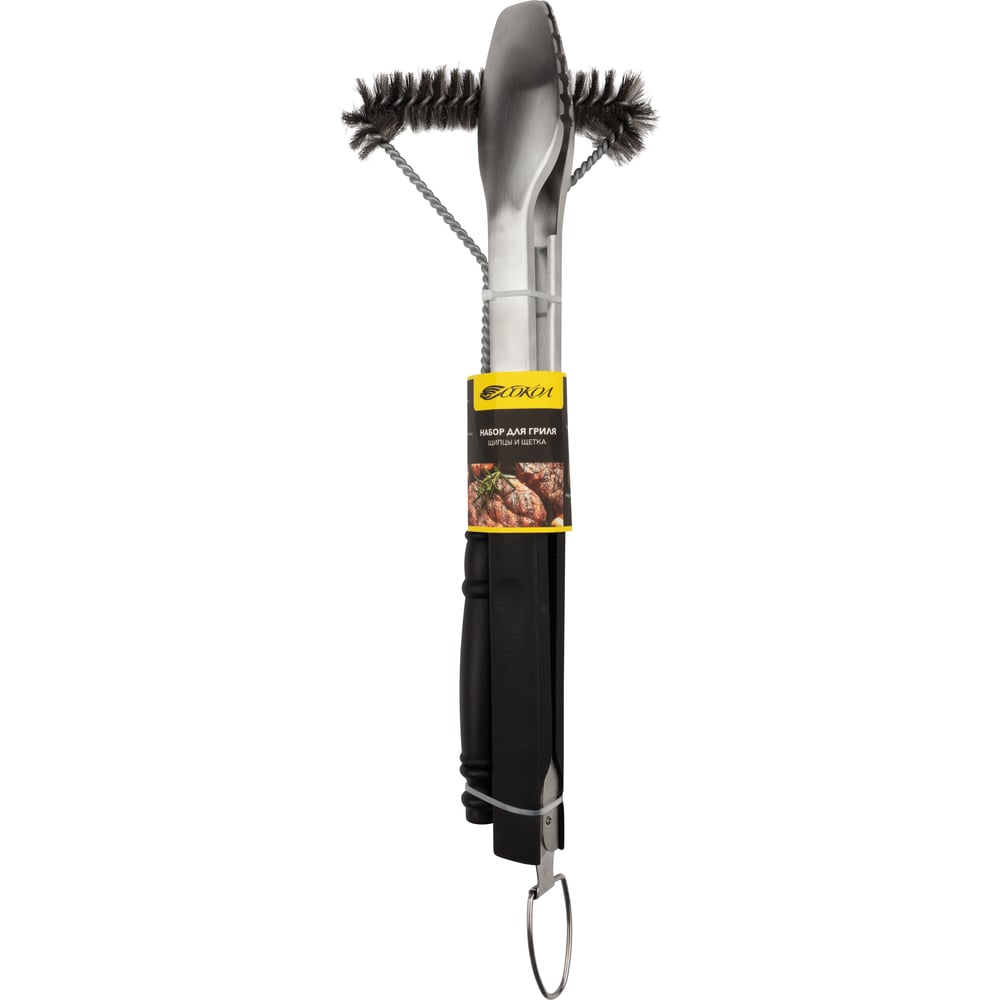 Набор: щипцы и щетка для барбекю и гриля СОКОЛ Комфорт 62-0049