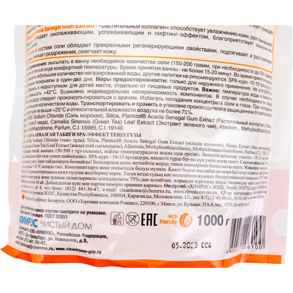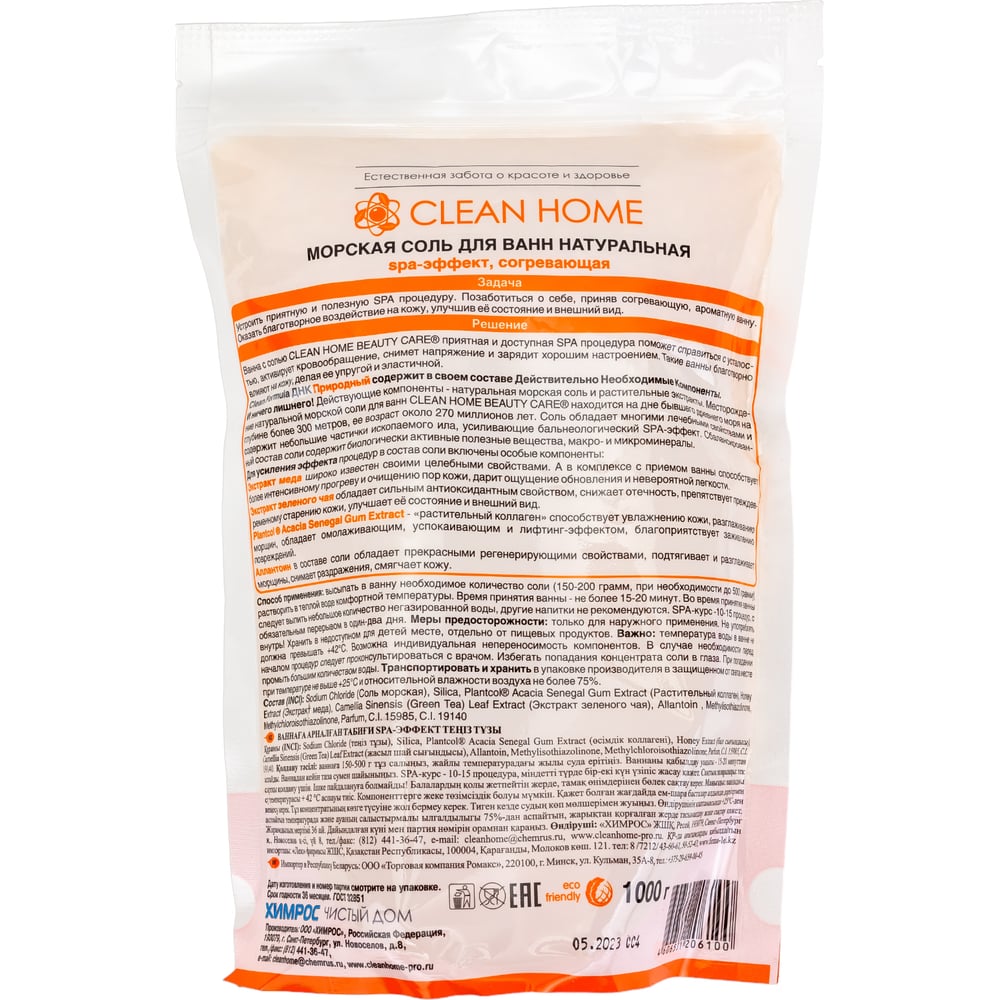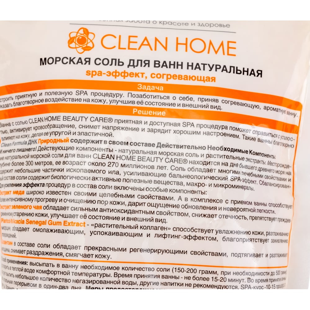 Морская согревающая соль для ванн CLEAN HOME 1 кг 539