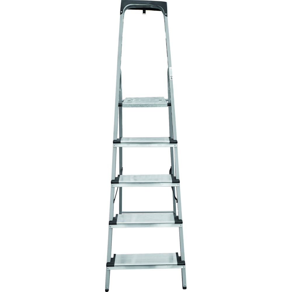 Габариты без упаковки 1760х470 мм Материал сталь/алюминий Вид односторонняя Тип стремянка Класс товара Бытовой Вес нетто 7.1 кг Высота площадки 1.03 м Широкие ступени да Лоток для принадлежностей да Размер в сложенном состоянии 176х47 см Рабочая высота 3.03 м Max рабочая нагрузка 150 кг Общая длина 1.76 м Кол-во ступеней по одной стороне 5 шт Ширина ступеней 130 мм Ширина лестницы 470 мм min длина в сложенном состоянии 1.76 м Количество ступеней 5 шт Телескопическая/выдвижная нет Телескопическая нет Для разноуровневых поверхностей нет
