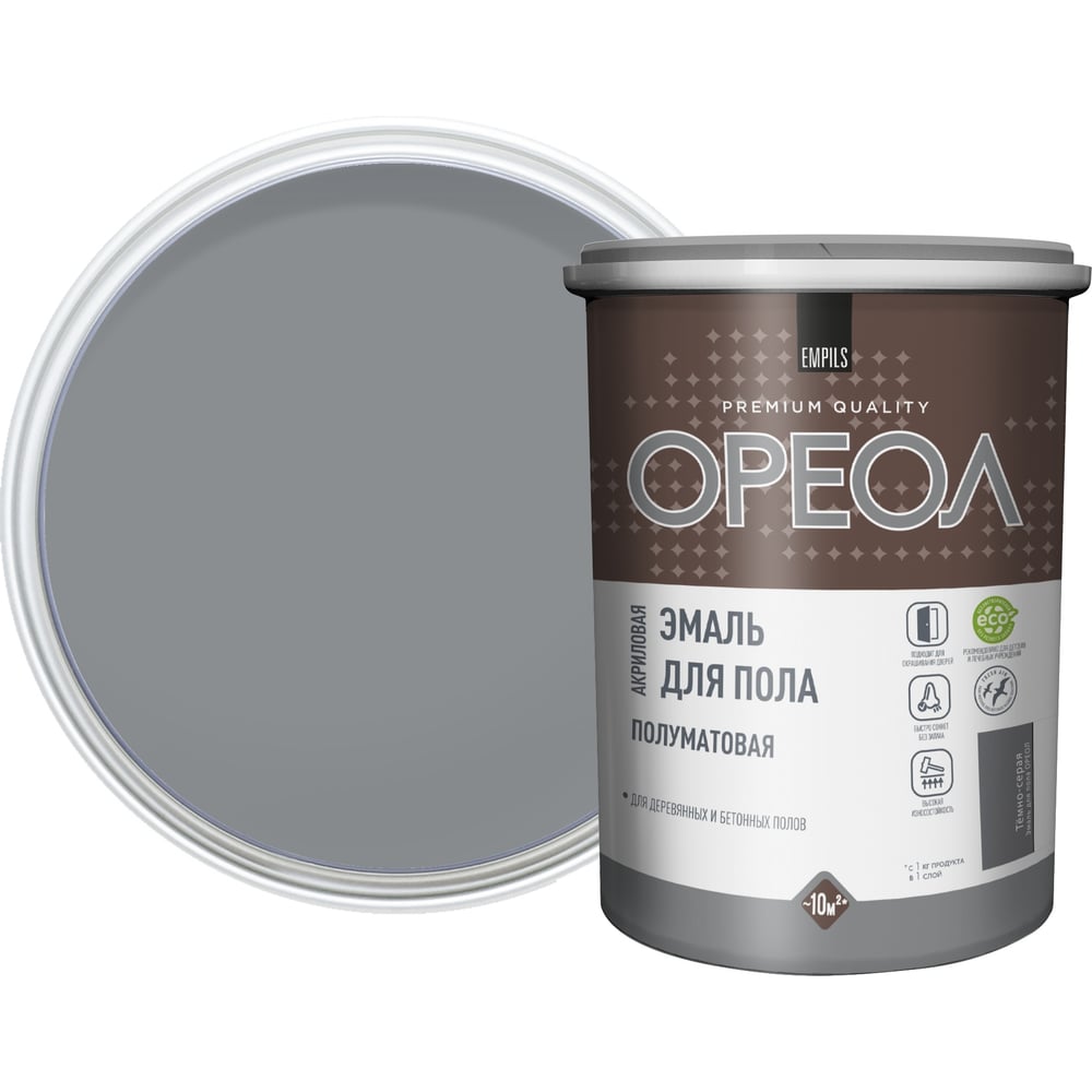 Акриловая эмаль для пола Ореол (полуматовая; тёмно-серая; 0.9 кг) 78185