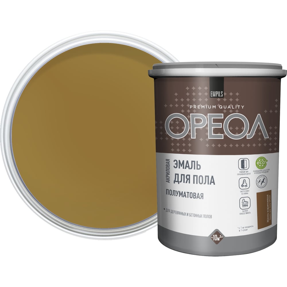 Акриловая эмаль для пола Ореол (полуматовая; желто-коричневая; 0.9 кг) 73363