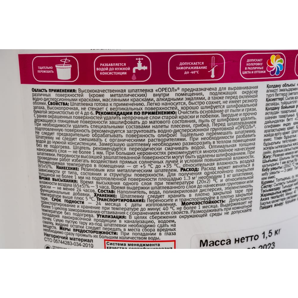 Интерьерная шпатлевка Ореол (водно-дисперсионная; латексная; 1.5 кг) 66526