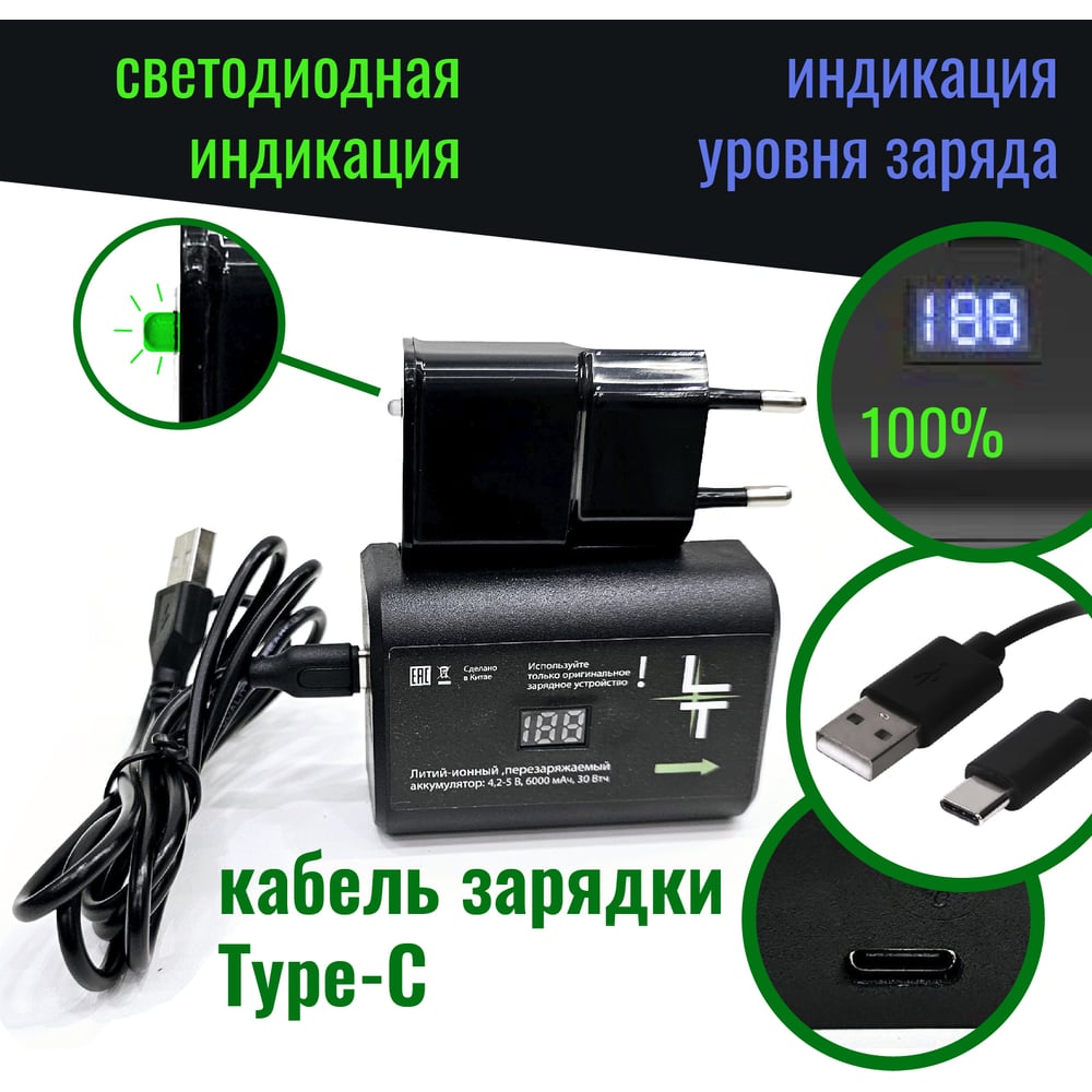 | Время работы на одном заряде | 8 ч |