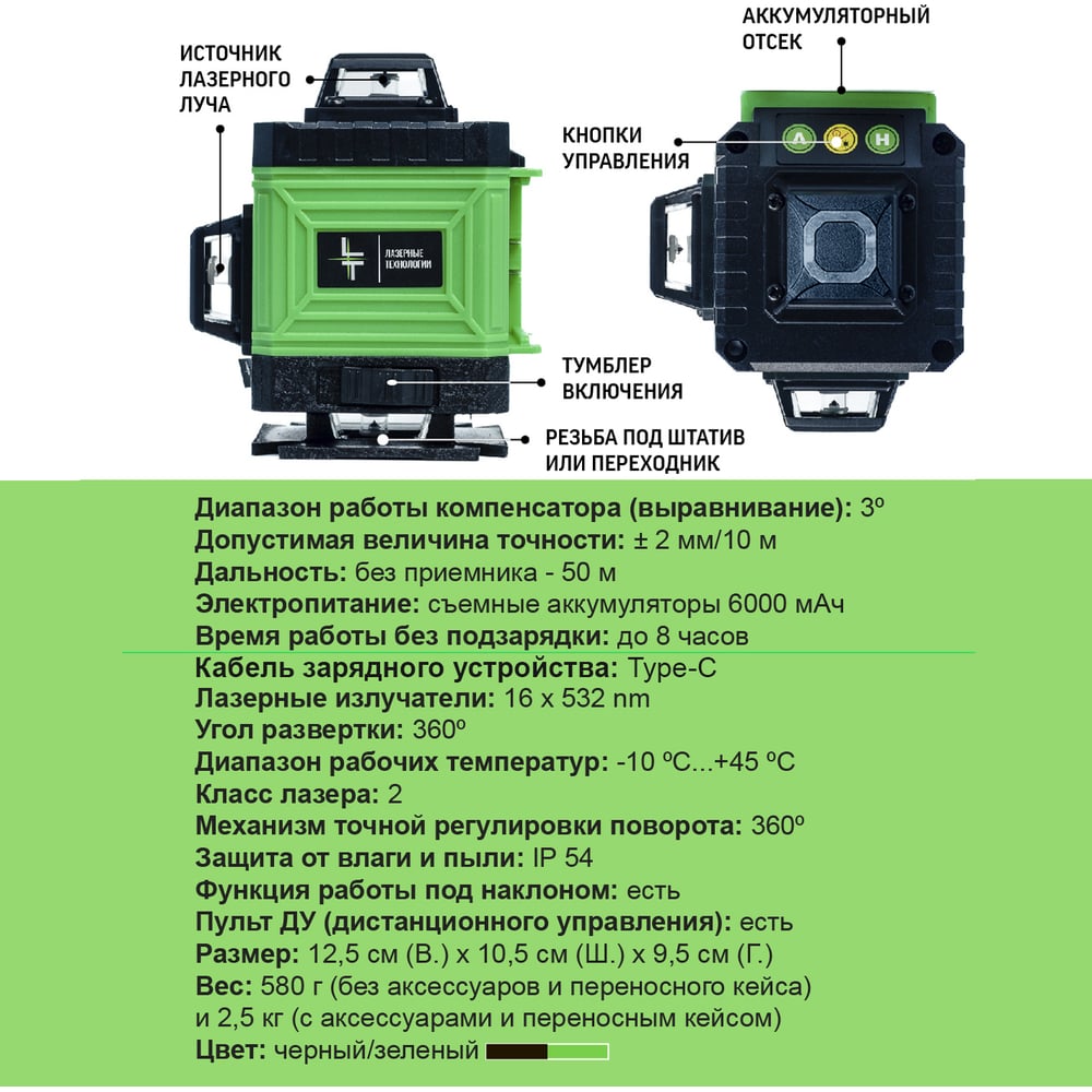 | Цвет луча | зеленый |