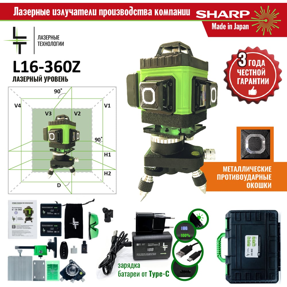 | Направление лучей | 2 горизонтали 360 град./2 вертикали 360 град. |