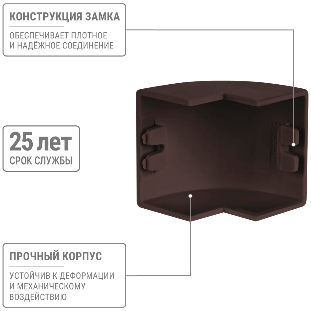 Высота 16 мм Длина 50 мм Материал ПВХ Ширина 25 мм Цвет бук Тип внешний угол Вес нетто 0.024 кг Степень защиты IP40 Количество в упаковке 4 шт Температура эксплуатации от -40 до +70 °С Цвет RAL 8022 Палитра коричневый Температура монтажа от -15 до +60 °С Климатическое исполнение УХЛ1 Размер 25х16 мм Количество вводов 2 шт Высота кабель-канала 16 мм Ширина кабель-канала 25 мм Количество отсеков 1 шт Изменяемый угол нет