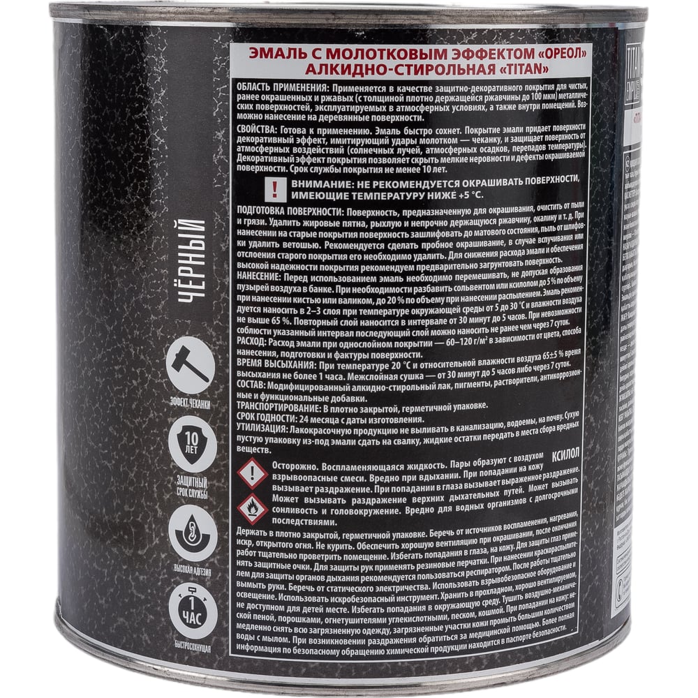 Эмаль с молотковым эффектом Empils Titan Ореол (алкидно-стирольная; чёрная; 2.5 кг) 77637
