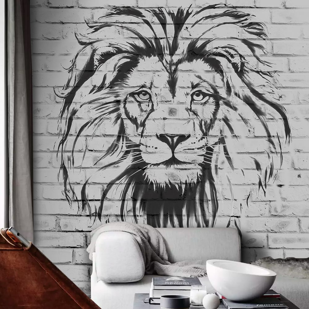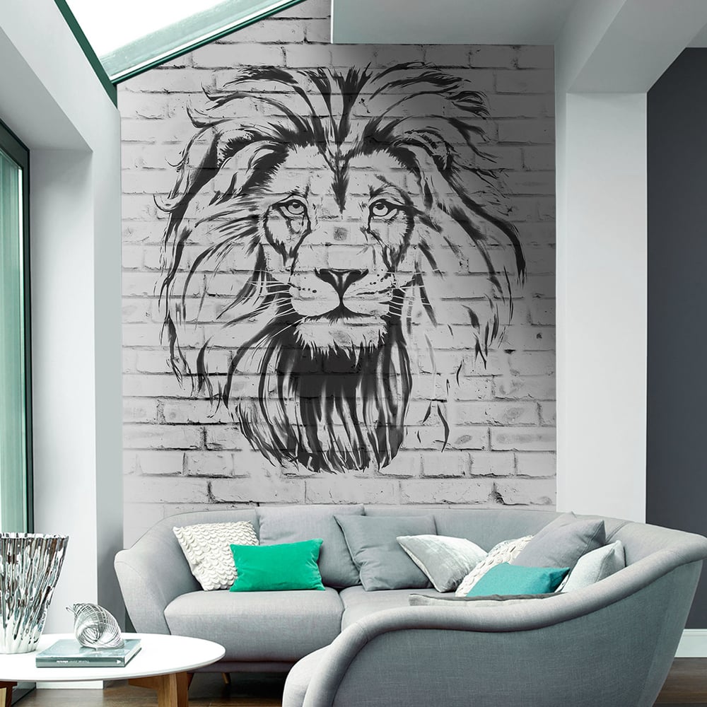 Бумажные бесшовные фотообои Verol Кирпичная стена и лев (площадь 3,1 кв.м; ширина 155 см; высота 200 см; плотность 115 г/м) 62-БФО_04737