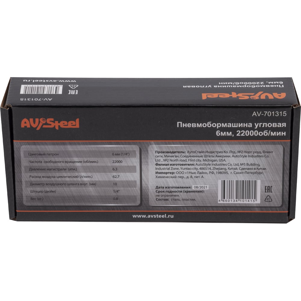 Угловая пневмобормашина AV Steel 6мм, 22000 об\мин, шт AV-701315