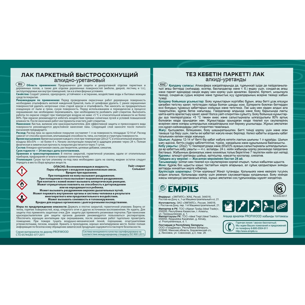 Быстросохнущий алкидноуретановый паркетный лак Profiwood 62239