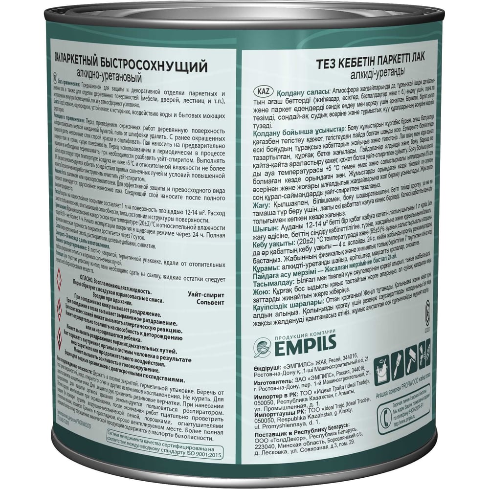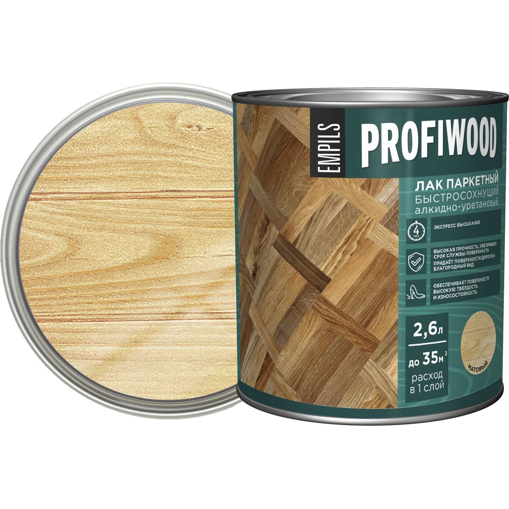 Алкидно-уретановый паркетный лак PROFIWOOD (быстросохнущий; матовый; 2.6 л; 2.4 кг) 62239