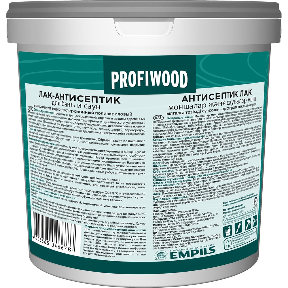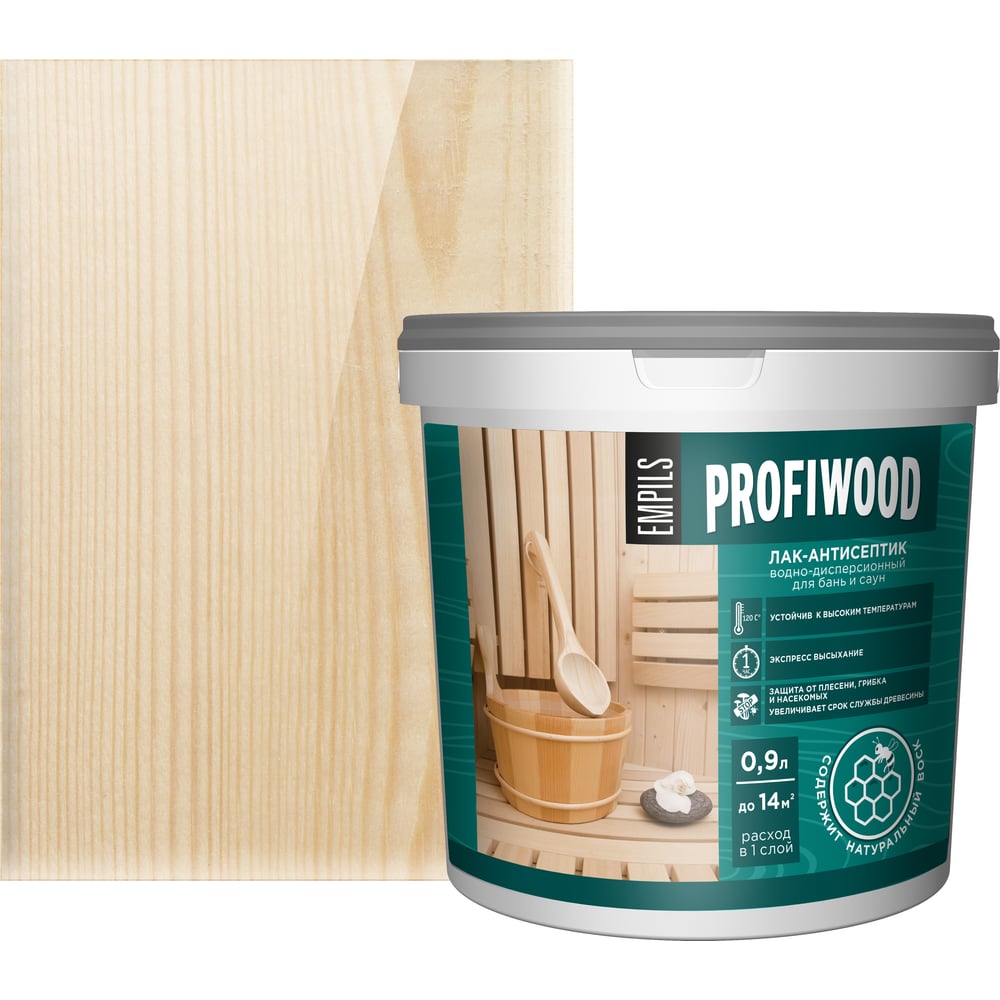 Водно-дисперсионный лак для бань и саун PROFIWOOD (антисептик; влагостойкий; полиакриловый; 0.9 кг) 6493