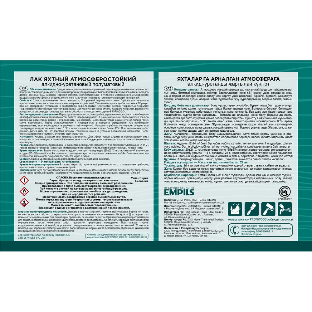 Атмосферостойкий алкидноуретановый яхтный лак Profiwood 62102