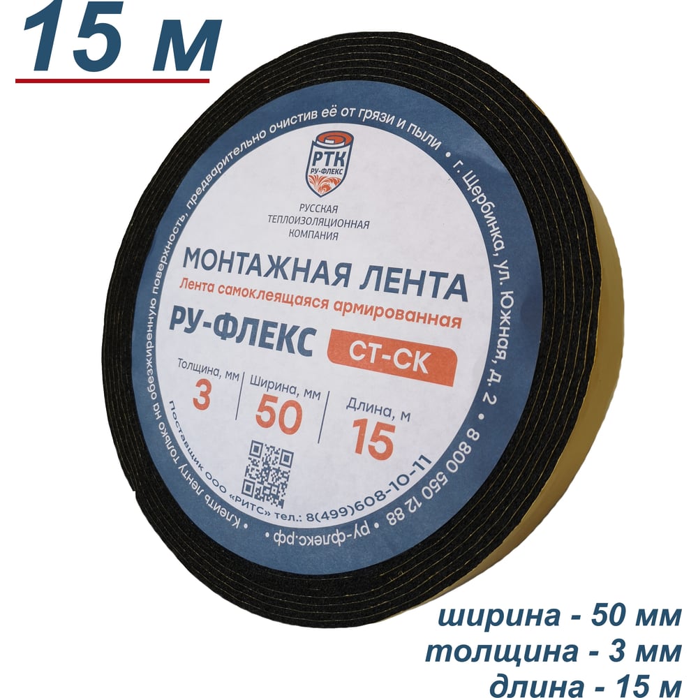 Монтажная самоклеящаяся армированная лента РУ-ФЛЕКС СТ СК 3x50-15 12091