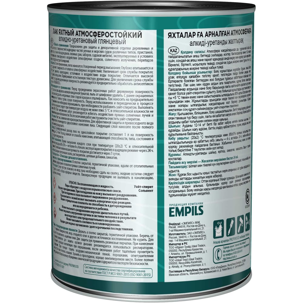 Алкидно-уретановый яхтный лак PROFIWOOD (атмосферостойкий; глянцевый; 0.8 л; 0.7 кг) 6463