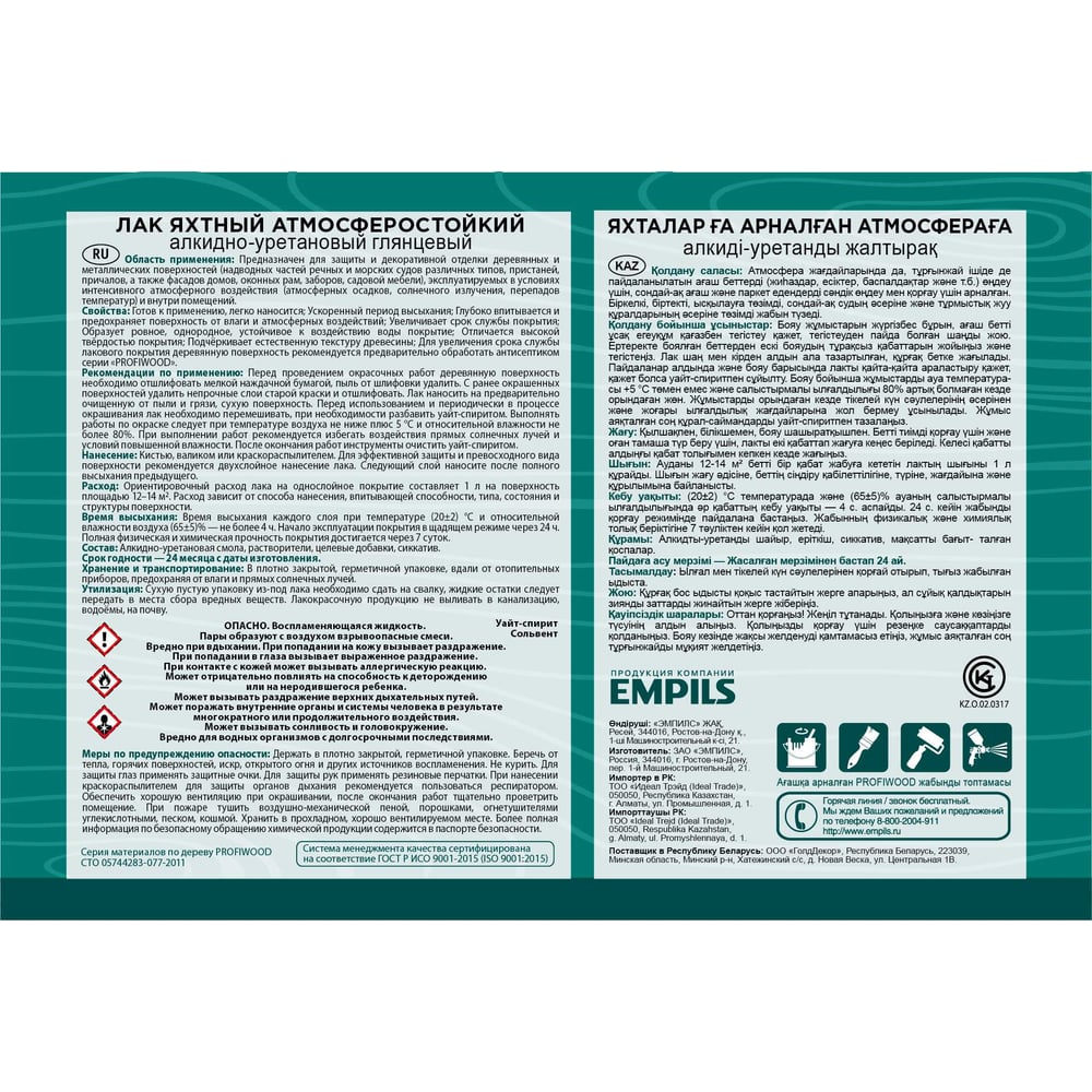 Атмосферостойкий алкидноуретановый яхтный лак Profiwood 6463