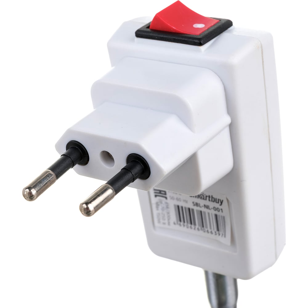 Гибкий переходник вилка-патрон Smartbuy Е14 300мм с выключателем, белый SBL-NL-001