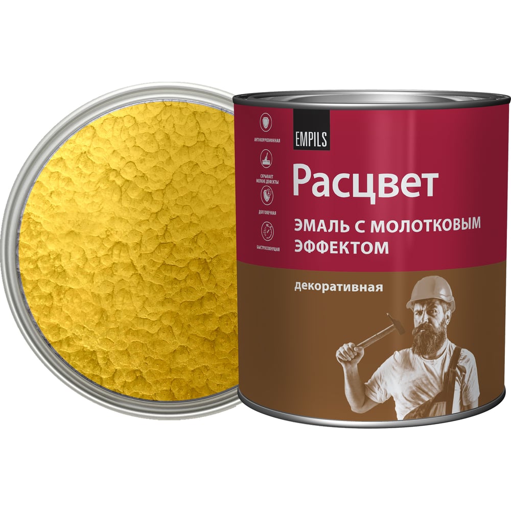 Эмаль с молотковым эффектом Расцвет алкидно-стирольная, золотистая, 2.5 кг 77622
