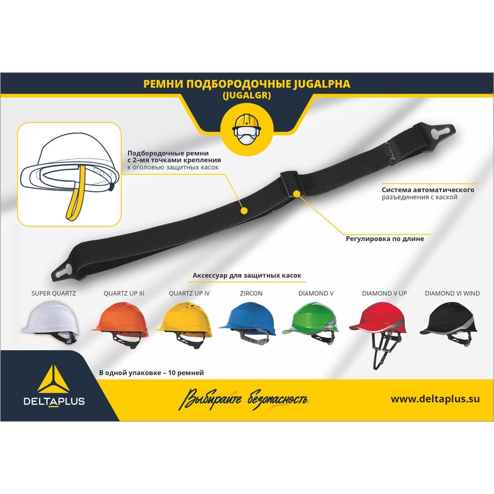 Подбородочные ремни Delta Plus JUGALPHA к защитным каскам, 10 шт. JUGALGR