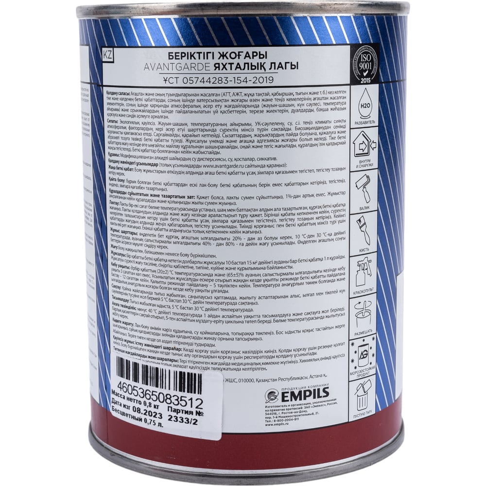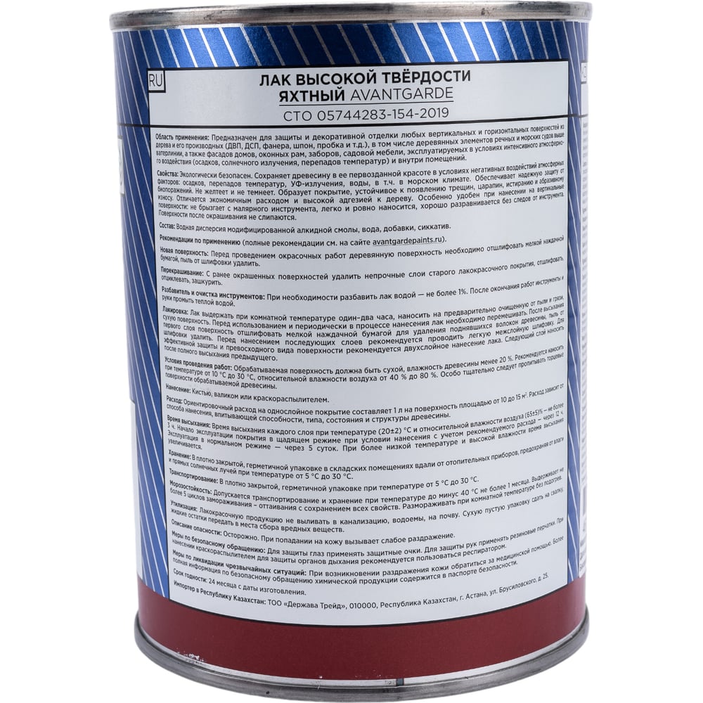 Яхтный лак Avantgarde высокой твердости, полуматовый, бесцветный, 0.75 л, 0.8 кг 77689