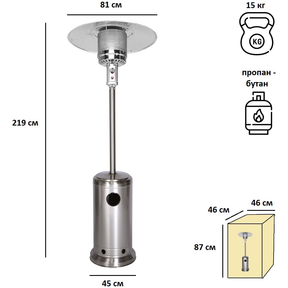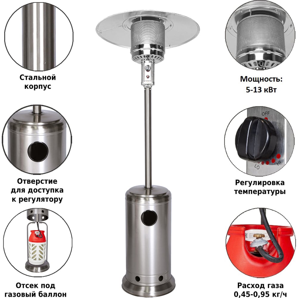 Уличный газовый обогреватель A-02T, нержавеющая сталь Aesto A-02T (нерж.сталь)