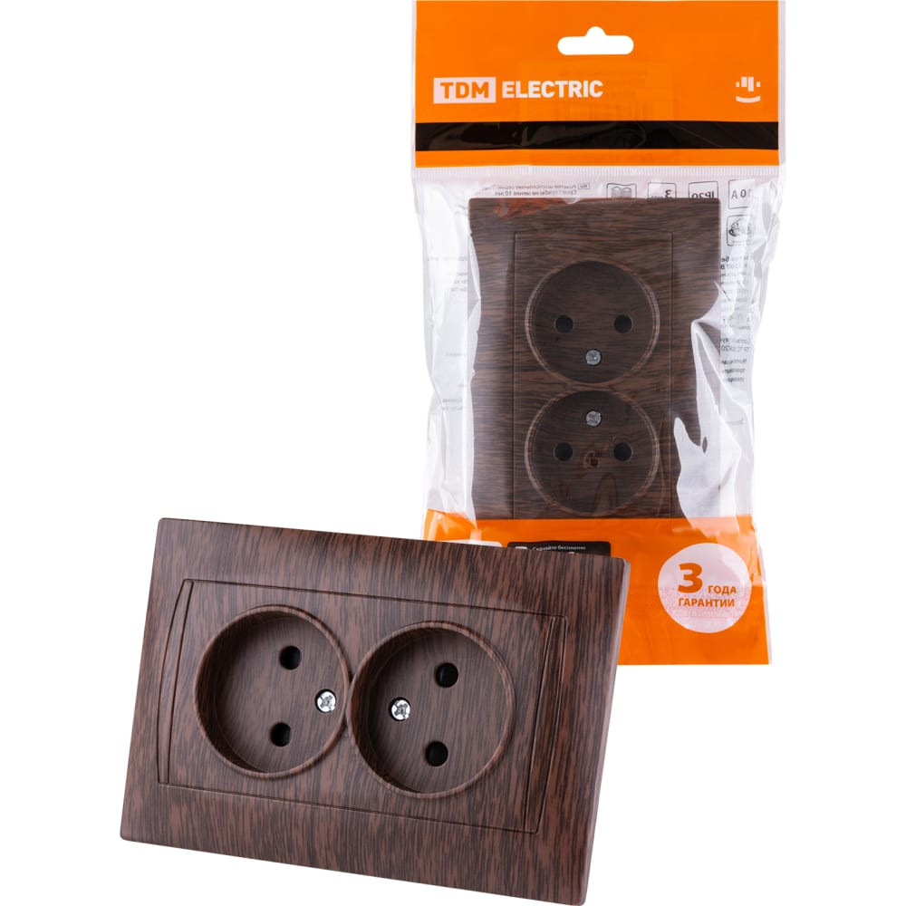 Розетка TDM ELECTRIC двойная 2П 10А 250В с защитными шторками венге "Лама" SQ1815-0412