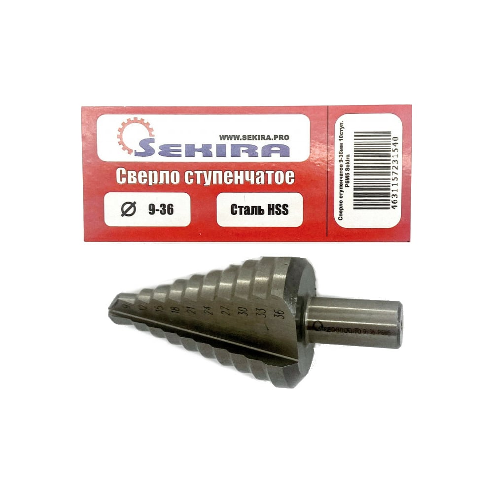 Сверло ступенчатое по металлу 9-36 мм, 10 ступеней, Р6М5 Sekira 00-00010712