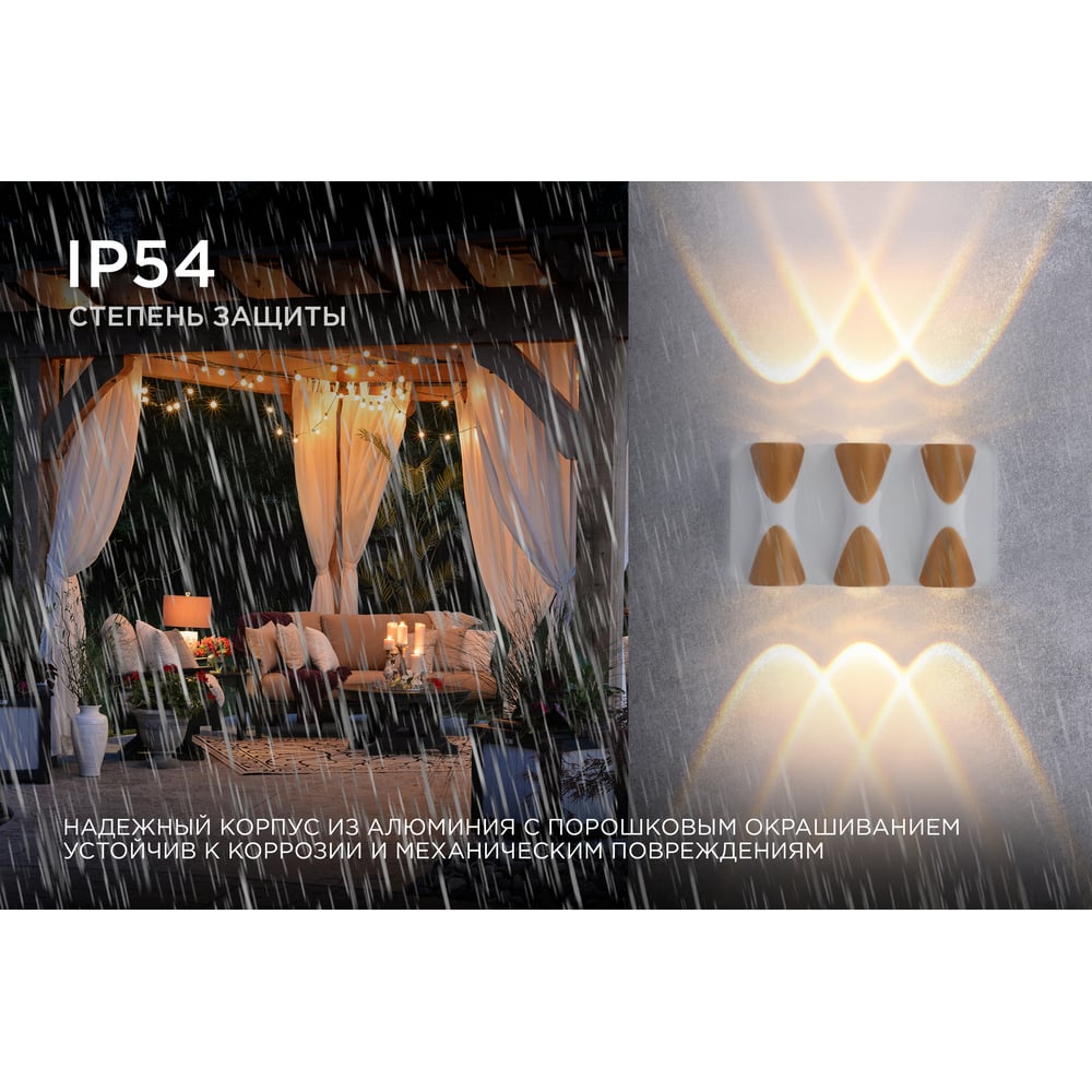Садово-парковый светильник Apeyron светодиодный, декоративный, настенный, 6Вт, 480Лм, 3000К, IP54, белый 31-01