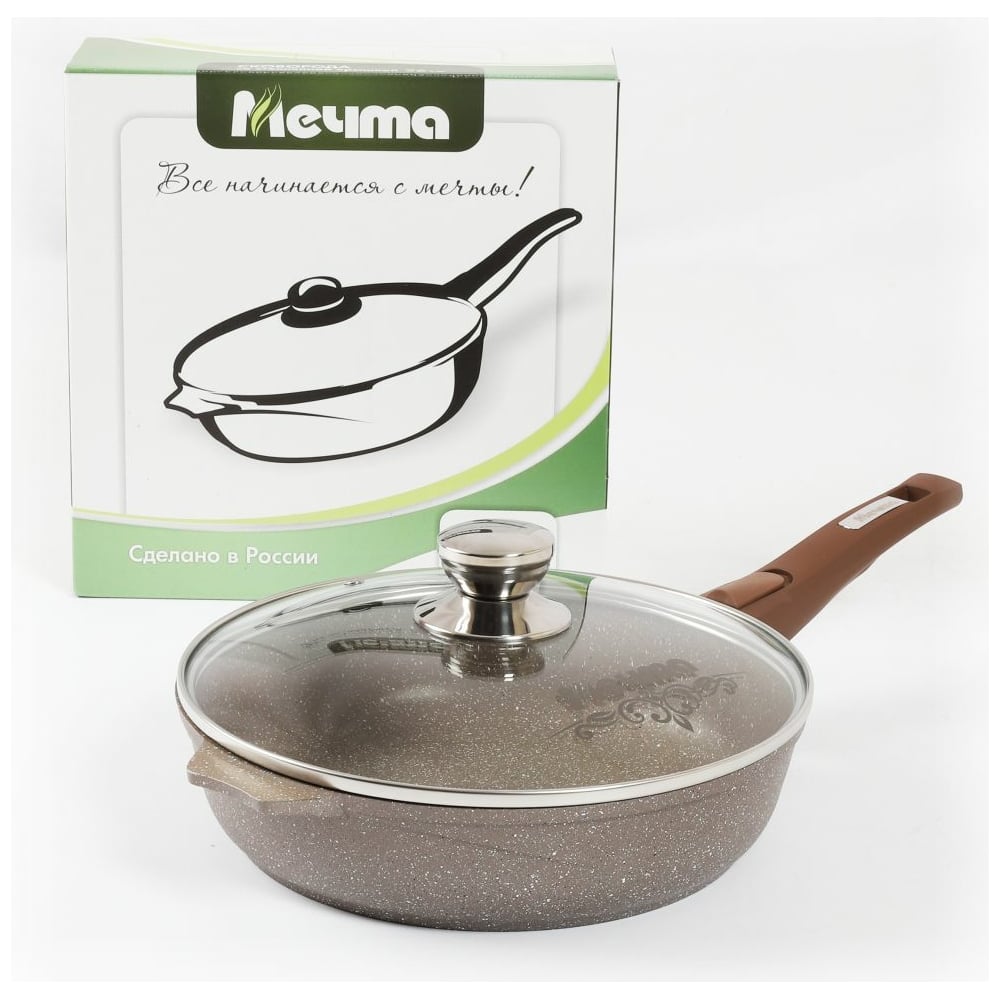 Сковорода Мечта АП Гранит brown 28 см, со съемной ручкой и стеклянной крышкой с028806
