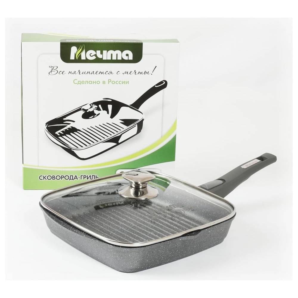 Квадратная сковорода-гриль Мечта АП Гранит 26х26 см, со съемной ручкойи стеклянной крышкой с066701