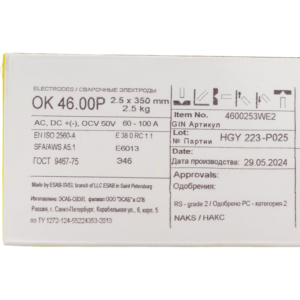 Электроды сварочные OK 46.00 (2.5 мм; 2.5 кг) ESAB 4600253WE2