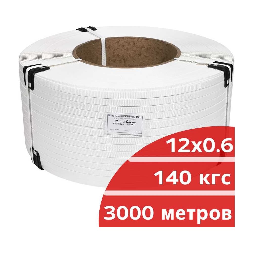 Лента полипропиленовая Кордленд 12х0,6 мм х 3 км, 140 кгс, белый, М/ПА PP-00668