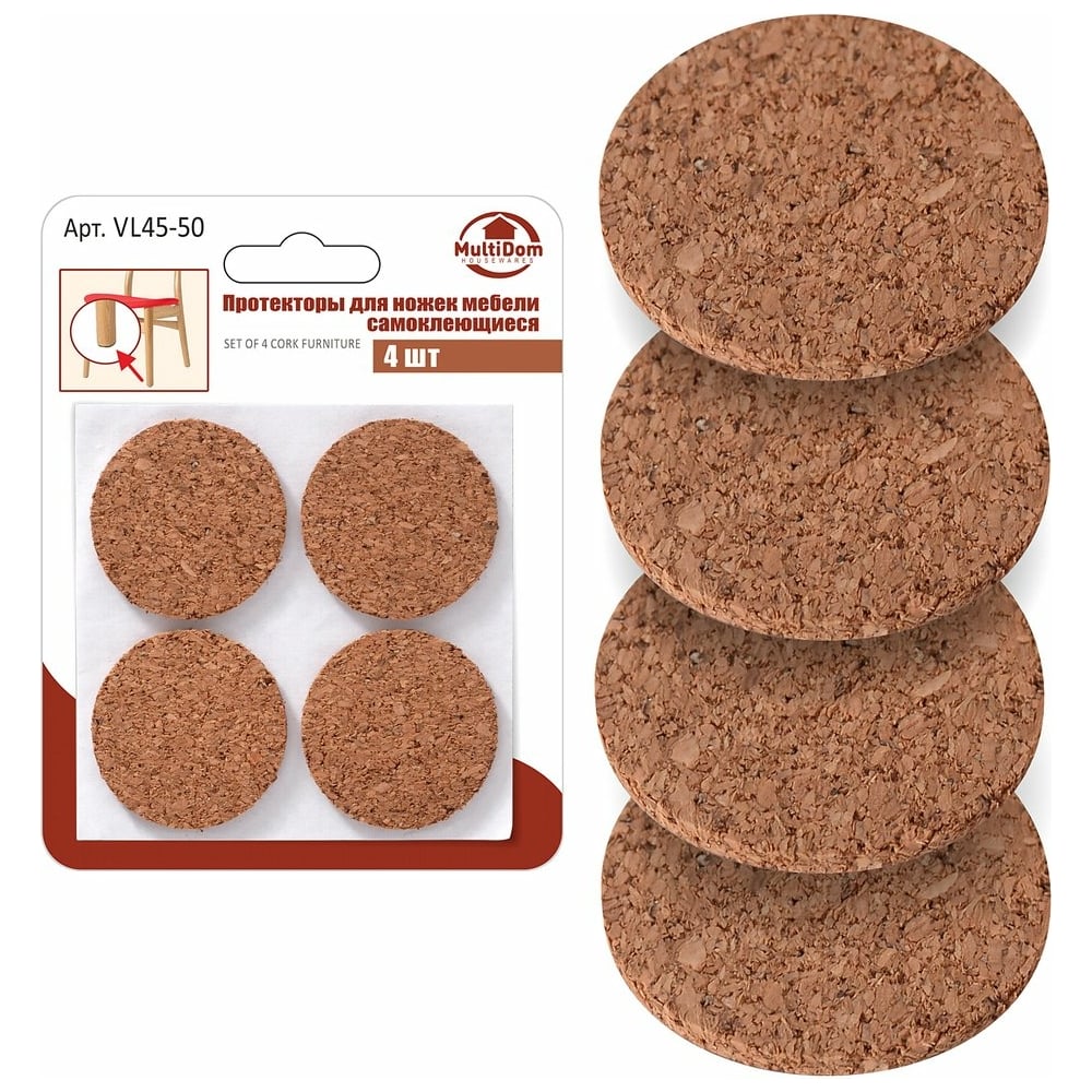 Самоклеящиеся протекторы для ножек мебели МУЛЬТИДОМ набор 4 шт. VL45-50