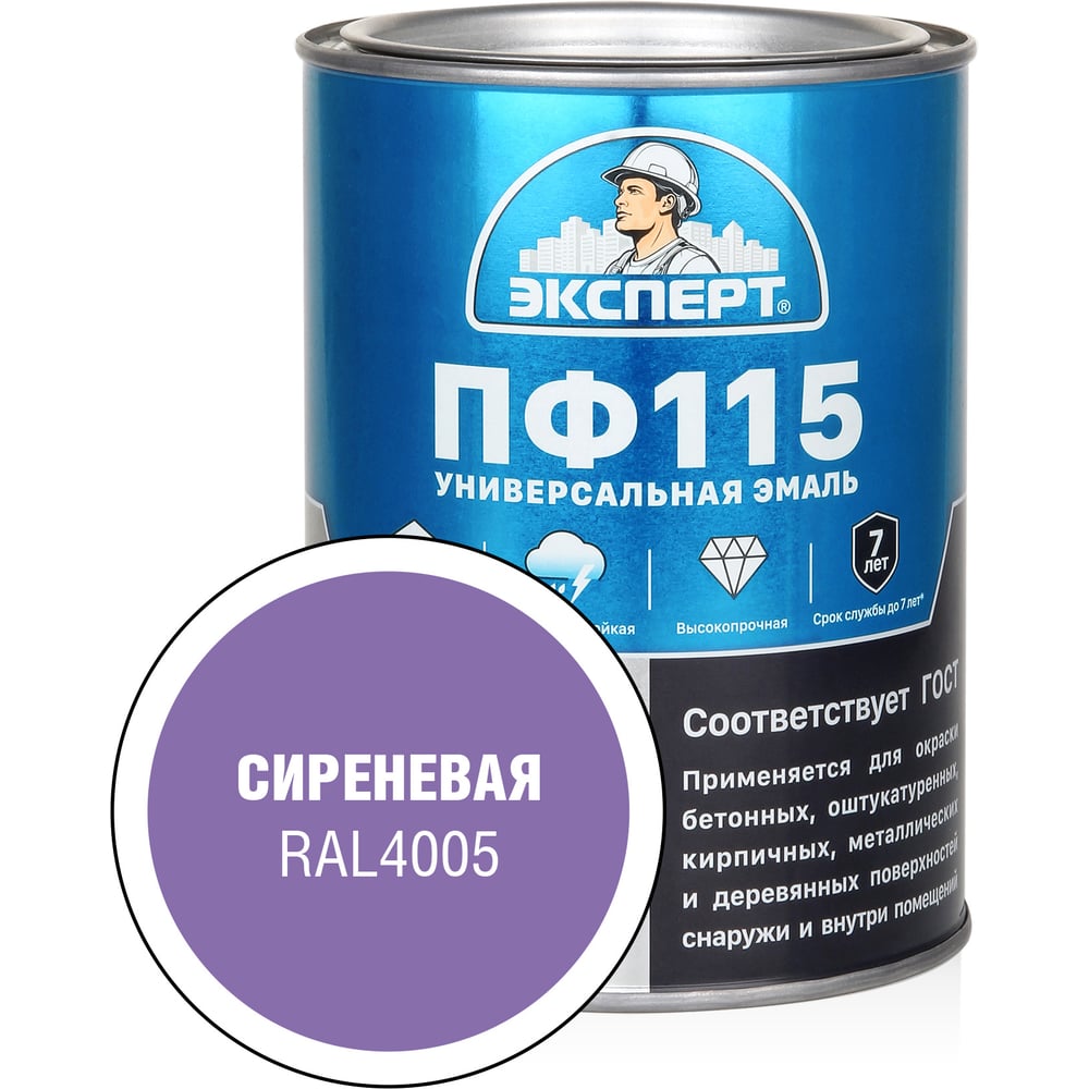 Эмаль ЭКСПЕРТ ПФ-115, глянцевая, сиреневая, RAL 4005 0.8 кг 34126