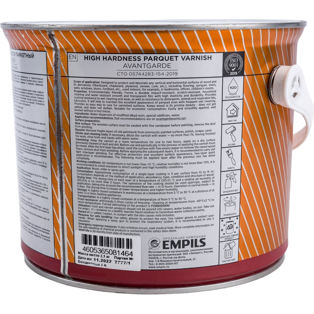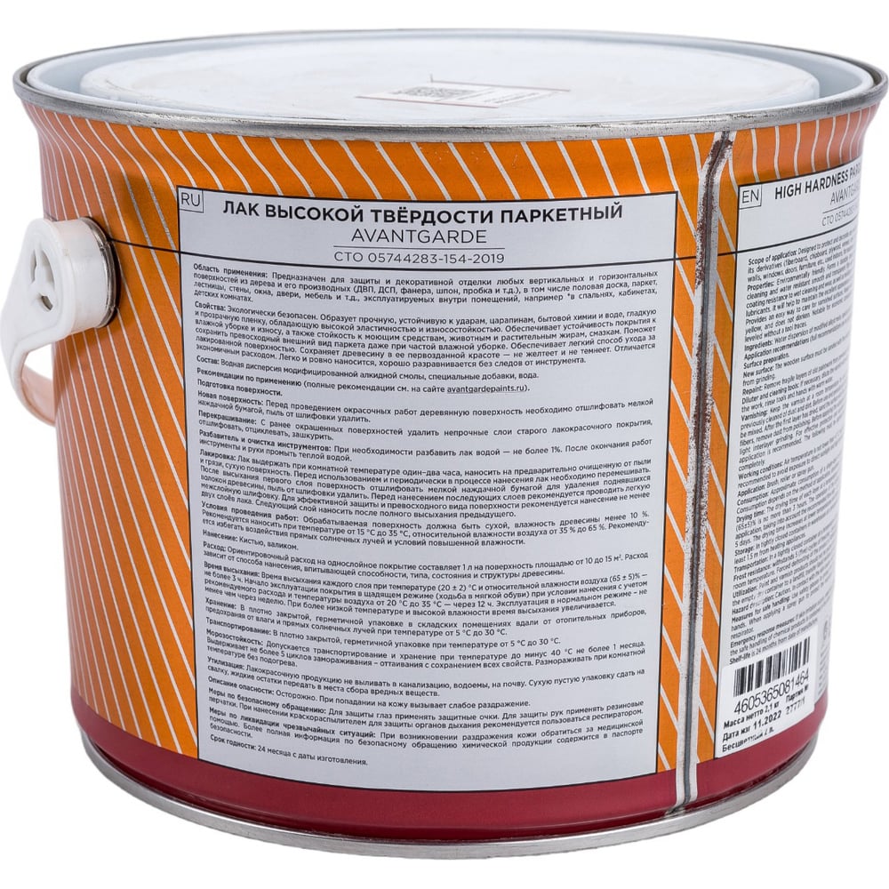 Паркетный лак Avantgarde высокой твердости, полуматовый, бесцветный, 2 л, 2.1 кг 75863