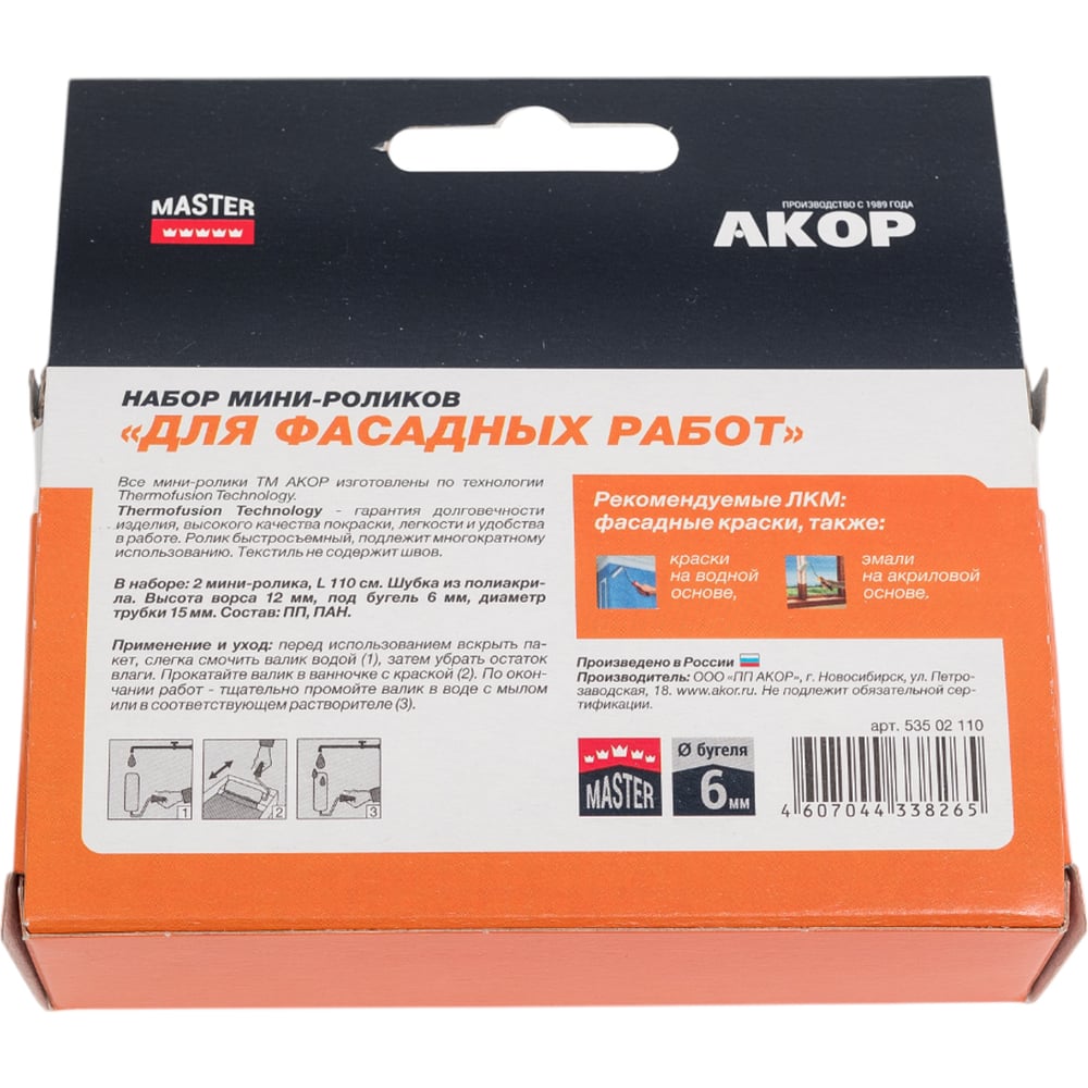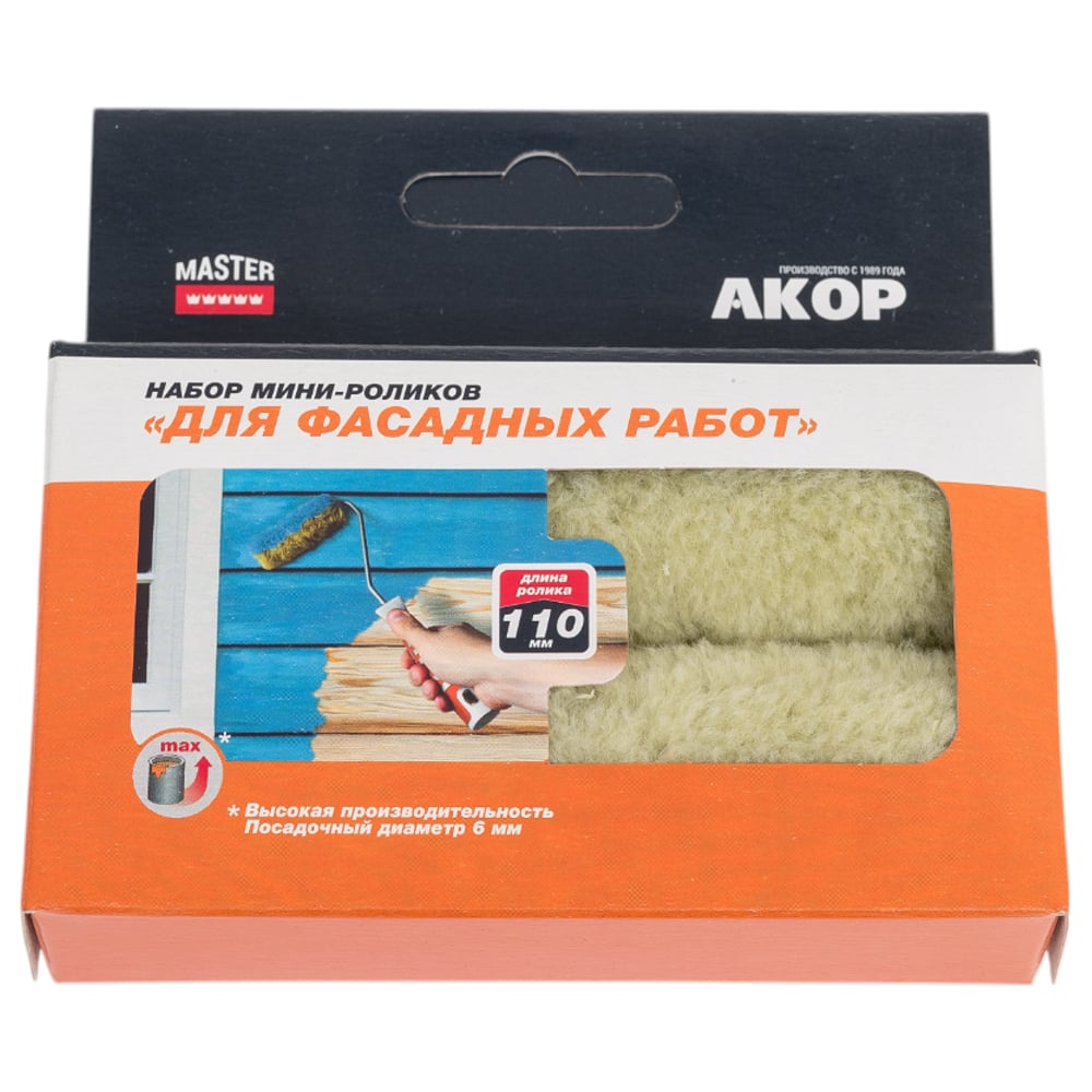 Ролик Акор мини д/валика, полиакрил, д/фасадных работ, 110 мм 2шт 240-2110-2