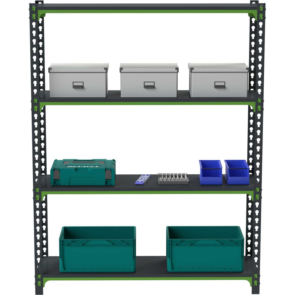 Габариты без упаковки 2000x1200x500 мм Высота 2000 мм Материал сталь Покрытие порошковое Ширина 1200 мм Цвет серый, зеленый Вид стеллаж Класс товара Бытовой Установка напольный Глубина 500 мм Конструкция стационарный Сборные нет Max нагрузка на полку 200 кг Кол-во полок/ярусов 4 шт Шаг регулирования высоты полки 50 мм Вес стеллажа 21.5 кг Безболтовые нет
