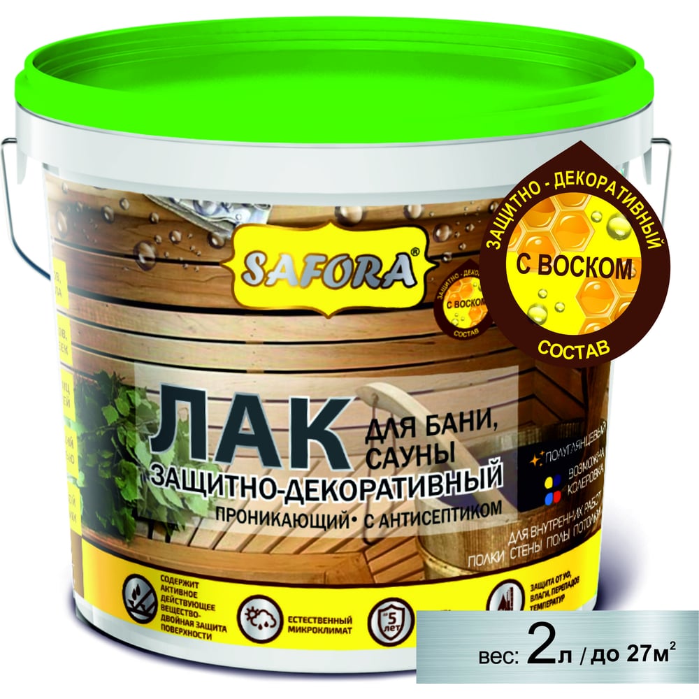 Лак SAFORA для бань и саун 2 л 018