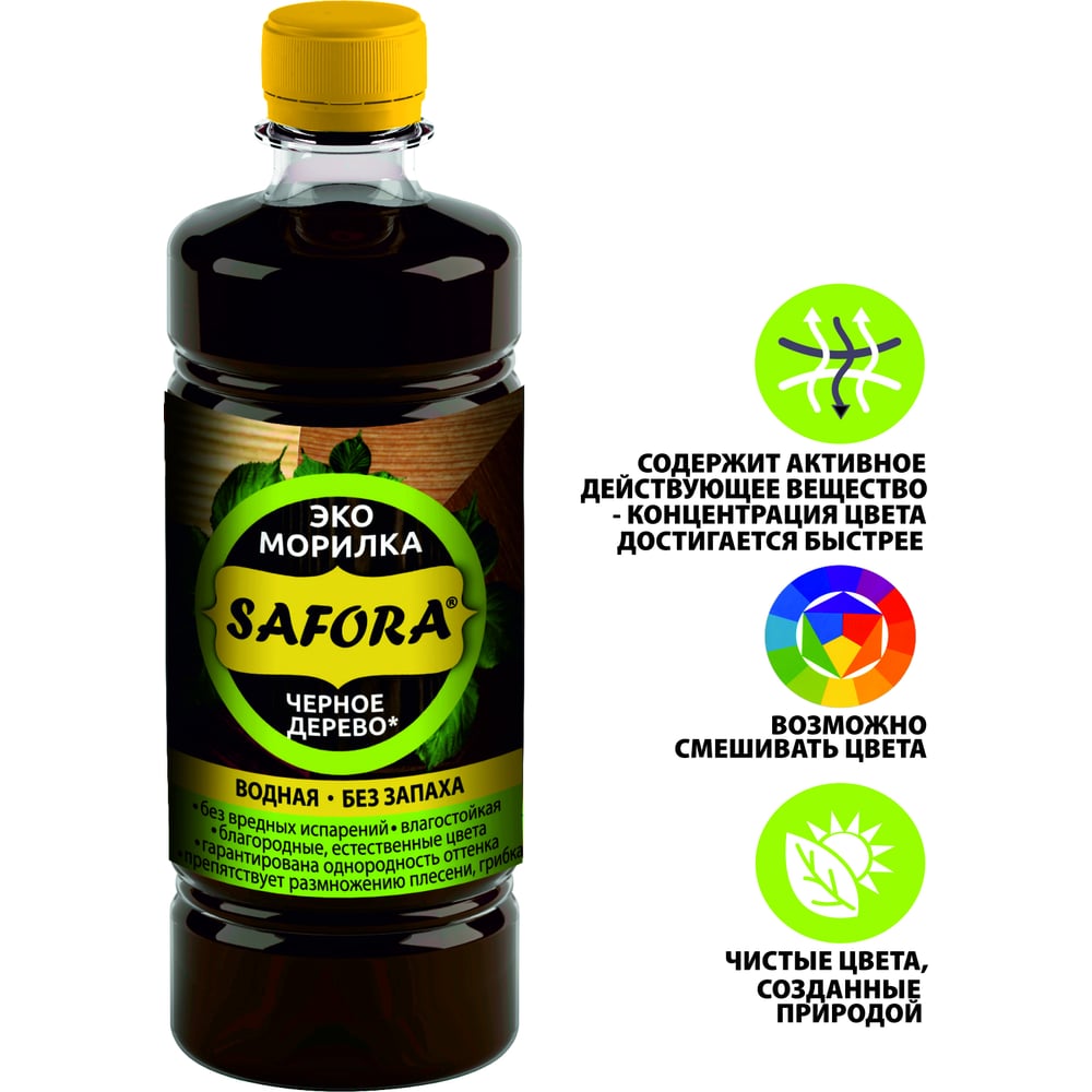 Морилка для дерева SAFORA водная, черное дерево, 500 мл 008