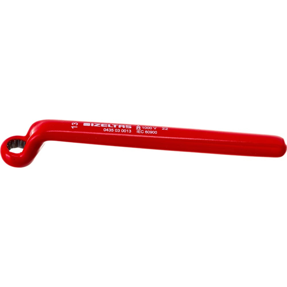 Диэлектрический накидной ключ IZELTAS 1000V изогнутый 13мм, длина 200 мм, 435030013