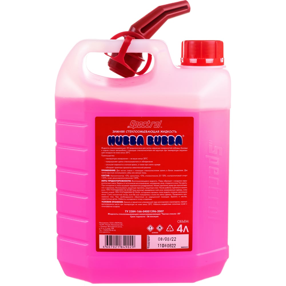 Зимняя стеклоомывающая жидкость Spectrol Hubba Bubba с ароматом жеват. резинки, - 20С, 4 л 9669