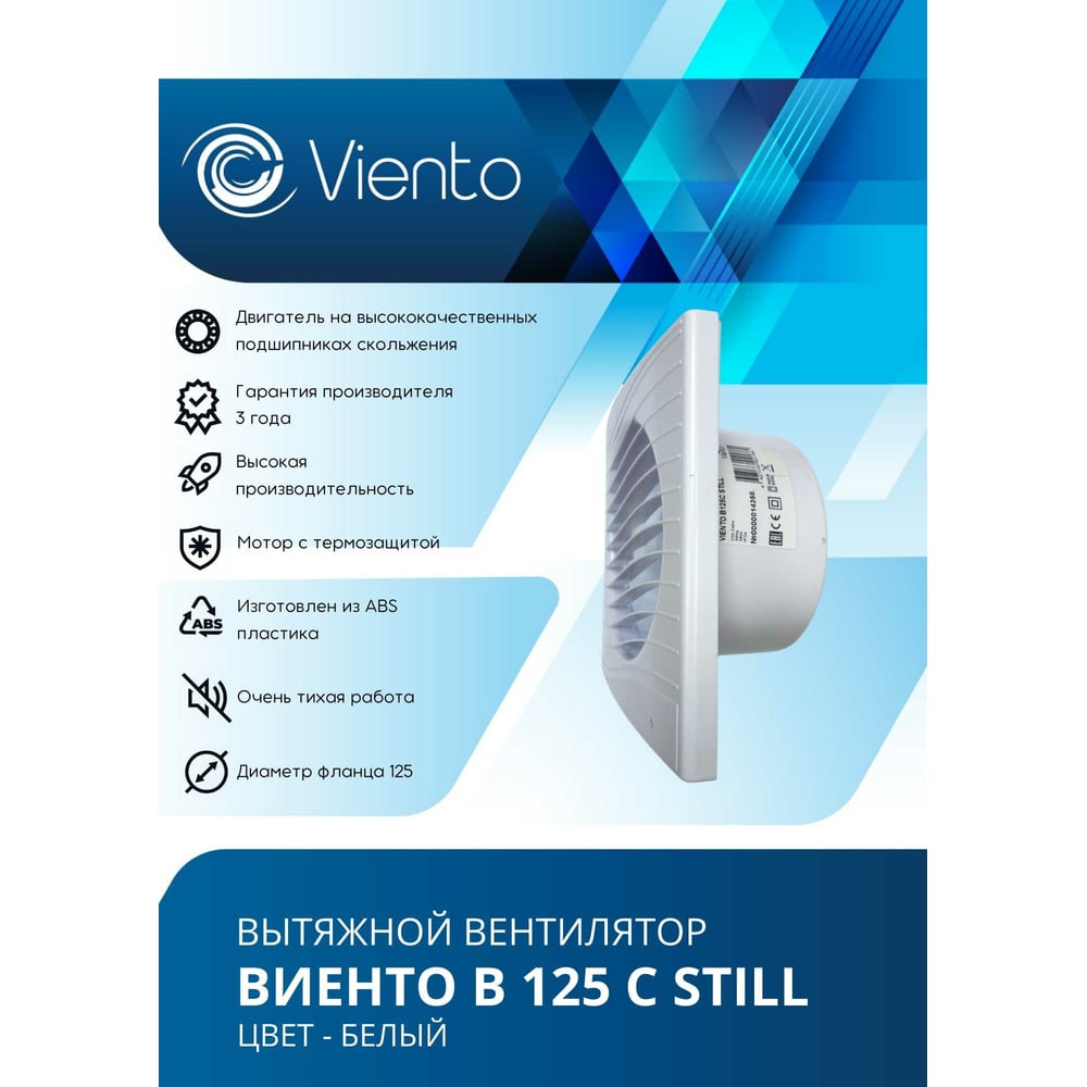 Осевой малошумный вытяжной вентилятор ВИЕНТО В125С STILL