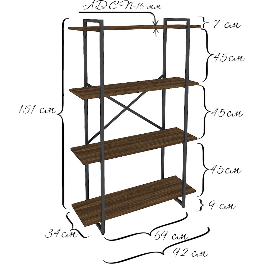 Стеллаж Металл-Завод GUTTA 151x92x34x4 коричневый/черный GS15192344B2